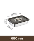 - 680 мл — 18,5 × 5,5 × 12,5 см