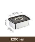 - 1200 мл — 18,5 × 8,5 × 12,5 см