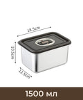 - 1500 мл — 18,5 × 10,5 × 12,5 см
