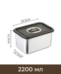 - 2200 мл — 20,5 × 11,5 × 14,5 см