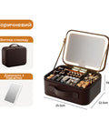 Ідеальний супутник для щоденного макіяжу та подорожей — стильна косметичка з вбудованим дзеркалом і підсвіткою. Завдяки продуманому дизайну з кількома секціями для зберігання та трьома режимами підсвічування, ви зможете комфортно фарбуватися в будь-яких умовах. Виготовлена з якісної штучної шкіри та міцного матеріалу EVA, вона поєднує естетику, функціональність і зручність у компактному форматі.