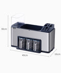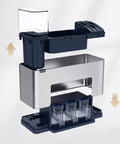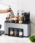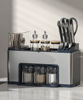 Кухонний органайзер з нержавіючої сталі та пластику — це практичне рішення для впорядкування робочої зони на кухні. Він поєднує в собі кілька функціональних зон для зберігання спецій, соусів, кухонних приборів і дрібного приладдя, дозволяючи тримати все необхідне під рукою та підтримувати ідеальний порядок під час готування.