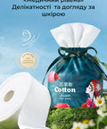 Бавовняні одноразові рушники в рулоні виготовлені з рослинного волокна у форматі відривного рулону. Упаковка містить 41 серветку, яка підходить для щоденної гігієни та зняття вологи після вмивання. Для щоденного догляду підходять як косметичні рушники для очищення шкіри.