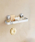 Organize your bathroom space with our suction cup bathroom shelf ! This cosmetic organizer has a stylish white design with hooks for towels and sponges. No-drill mounting, ideal for storing shampoos, gels, creams and accessories. Suitable for tiles, marble, painted wood, glass, acrylic and metal. Buy a bathroom shelf online with delivery in Kiev, Lviv, Odessa, Kharkiv and Ukraine!