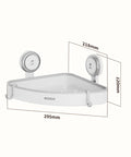 Organize your bathroom space with our corner bathroom shelf ! This cosmetic organizer with suction cups has a stylish white design with 2 hooks for towels and sponges. Size: 218 x 120 mm, mounting without drilling. Ideal for storing shampoos, gels, creams and accessories. Suitable for tiles, marble, painted wood, glass, acrylic and metal. Buy a bathroom shelf online with delivery in Kiev, Lviv, Odessa, Kharkiv and Ukraine!