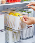 Контейнер для зберігання 5,8 л — практичне рішення для організації простору в холодильнику. Завдяки внутрішньому дренажному кошику продукти не контактують із зайвою вологою, що допомагає довше зберігати їхню свіжість та природний смак. Прозорий корпус дозволяє легко контролювати вміст, а щільна кришка захищає від сторонніх запахів і пересихання.