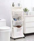 Організуйте простір у ванній на кухні чи в гардеробній за допомогою пластикового органайзера з кошиками. Три місткі кошики забезпечують зручне сортування та зберігання речей: білизни рушників іграшок або побутових дрібниць. Завдяки коліщаткам конструкцію легко пересувати а сучасний дизайн гармонійно впишеться у будь-який інтер’єр.